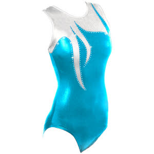 Turnpakjes van glansstof in de kleuren zilver en lichtblauw(caribic) met zilveren steentjes.